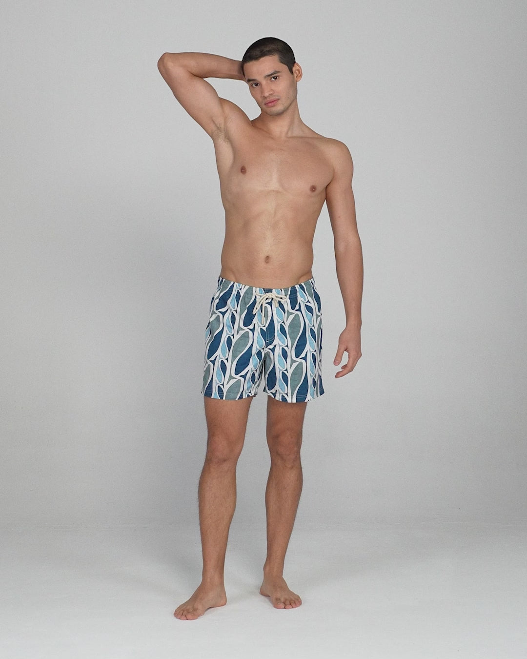 These swim shorts are crafted from a lightweight, quick-drying shell made from recycled water bottles. Featuring a playful fish print, they are designed for both style and performance with an elasticated drawstring waistband, reinforced side pockets, and built-in mesh briefs for extra support and comfort.