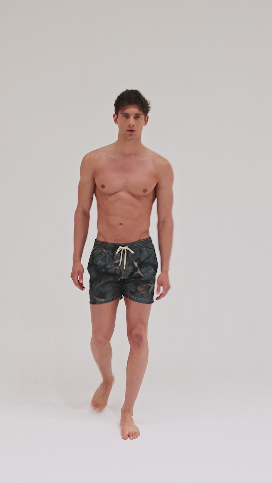Our soft, plain-weave mid-lenght Swim Short patterned with fig tree and fruit print in dark tones is designed with a regular fit and a mid-thigh leg. Made of Global Recycled Standard (GRS) certified fabric using regenerated yarn from plastic waste.