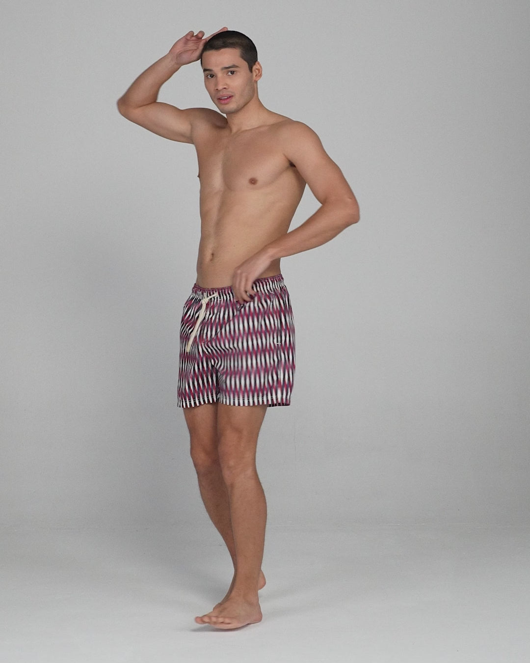 These swim shorts are made from quick-drying recycled fabric made using plastic waste salvaged from oceans and landfill. Printed with an original hand-painted mixed stripes, they are fitted with an elasticated drawstring waistband, have reinforced side pockets and have built-in mesh briefs for added support and comfort.